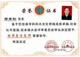 鄭青松大師易學功底深厚,精通五行術數,深得相天察地,觀砂嘗水之理,世傳風水理論,將三元、三合、玄空風水、六壬、四柱八字、姓名與人生等應用自如,是國內外知名的易學專家,姓名策劃專家,易學前輩。
